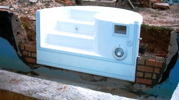 Når en swimmingpool skal renoveres, er udgifterne til udgravning, nylægning af rørsystemer og retablering af det omliggende areal, ofte meget store. I mange tilfælde vil det kunne gøres lettere og med betydelige besparelser ved at benytte en integreret trappe, hvor trappe, lys og rensningsanlæg er bygget ind i en samlet unit.